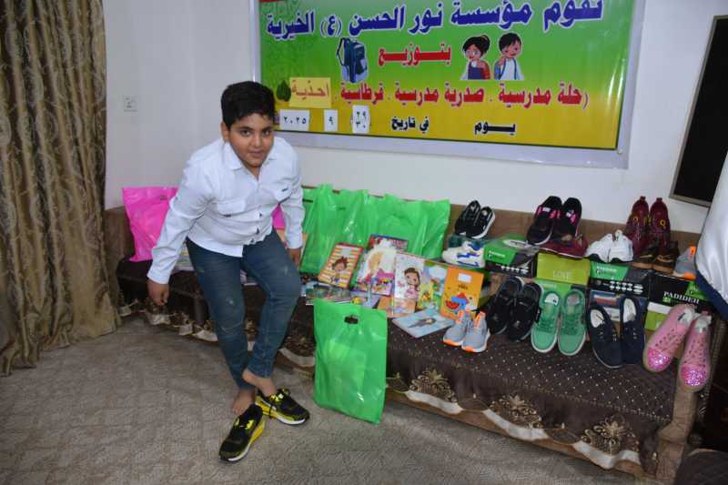 بلوازم مدرسية متكونة من حلة مدرسية وحذاء مدرسي ومجموعة