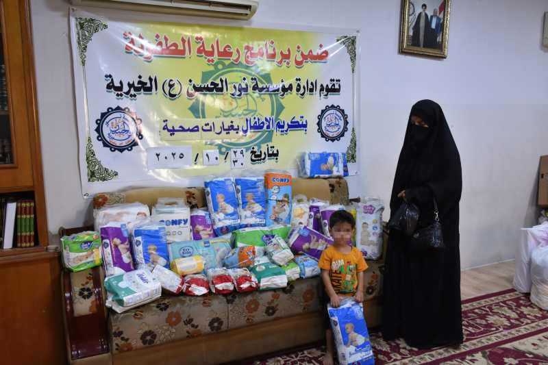 المؤسسة بتجهيز الأطفال بغيارات صحية ( حفاظات أطفال ) بواقع (5) سيت
