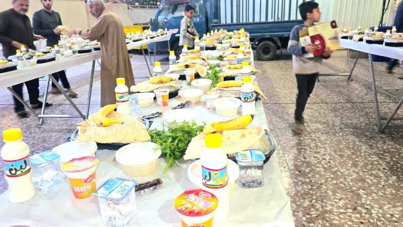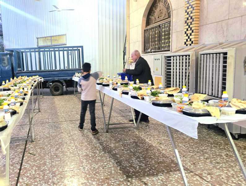 رواد الجامع على مائدة الافطار المباركة في قاعة جامع رأس الحسين(